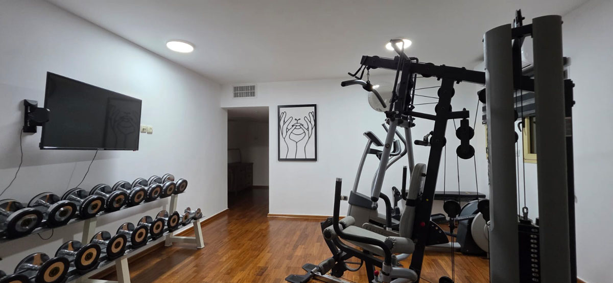 חדר כושר מפואר, שולחן סנוקר מקצועי ופינג פונג.