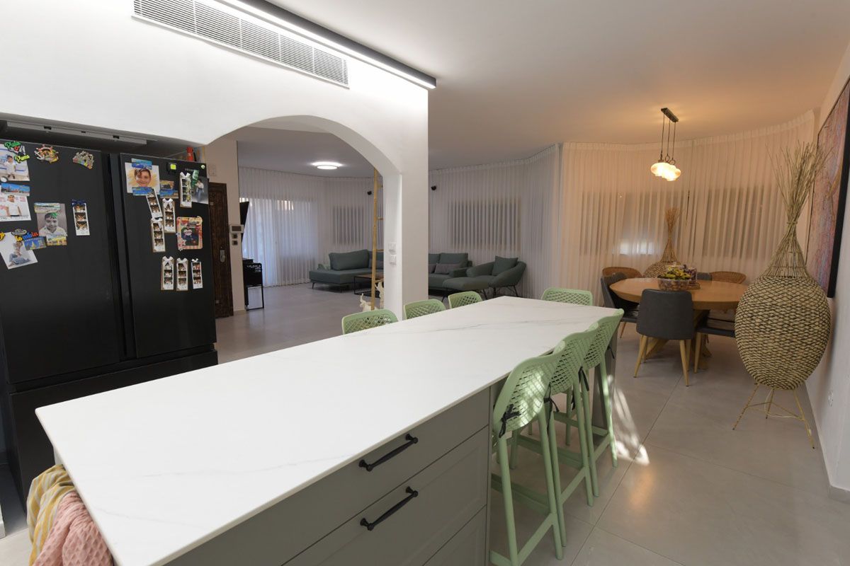 פנטהאוז עוצר נשימה המציע חלוקה חכמה בין אירוח משותף לפרטיות מלאה.