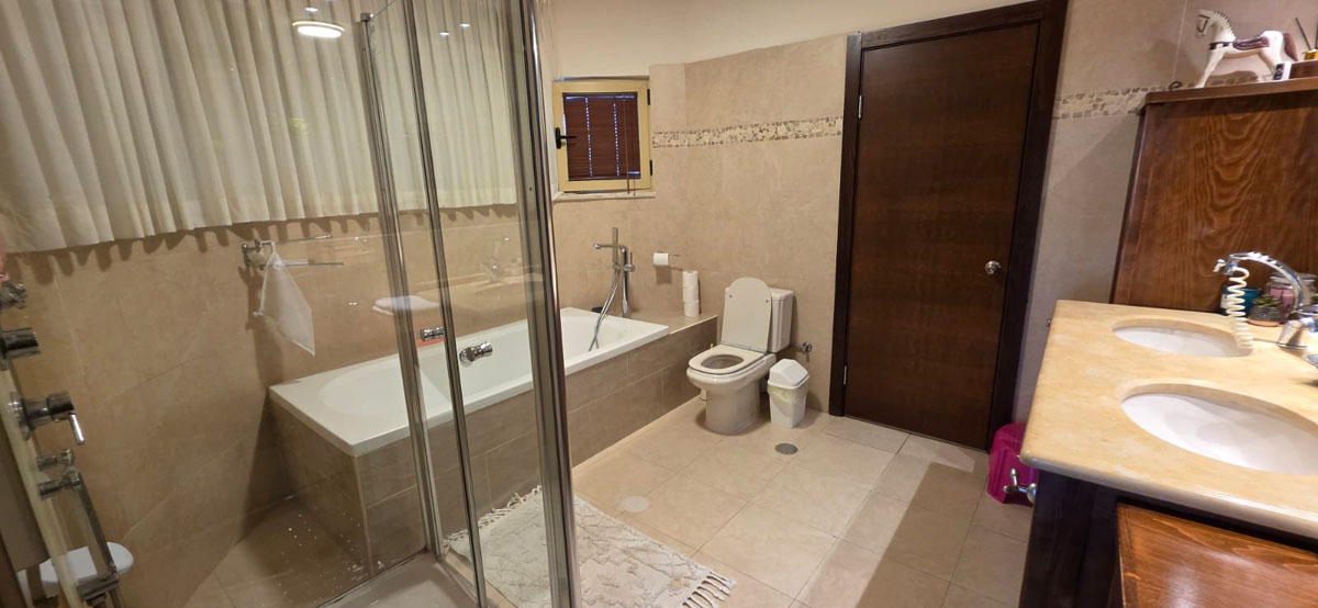 6 חדרי שינה זוגיים (מתוכם 2 במפלס התחתון ו-4 סוויטות גדולות במיוחד בעליון) + סלון מרווח.