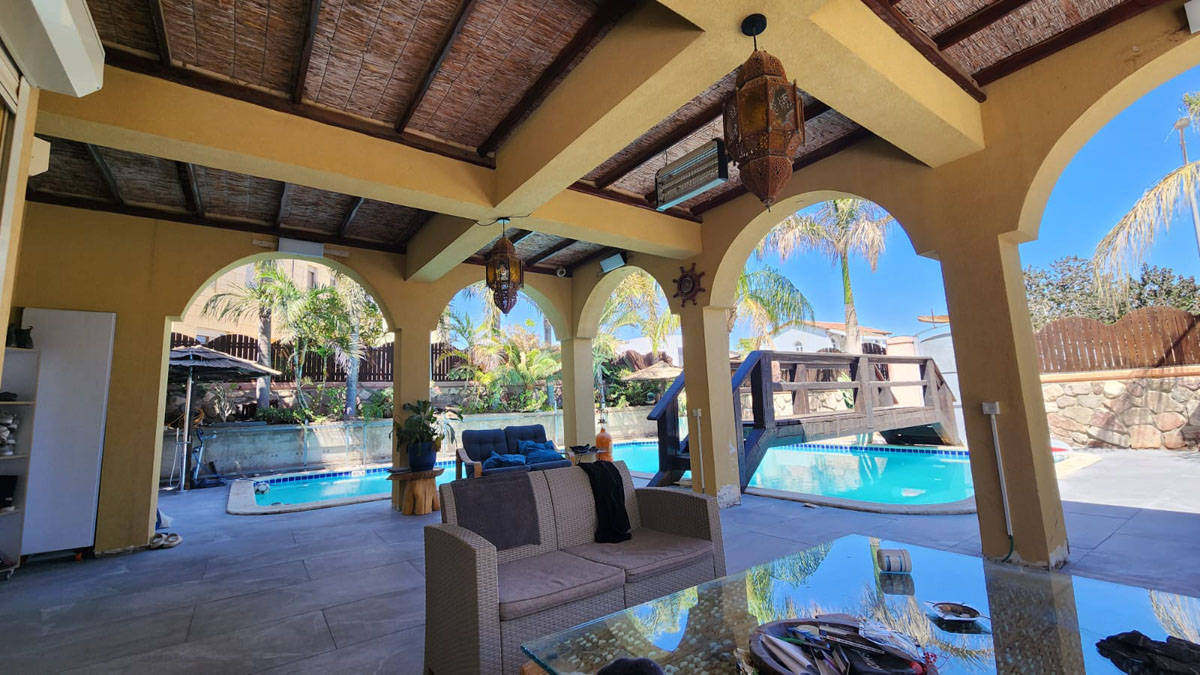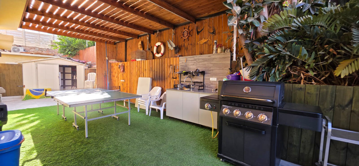 בריכה ענקית (מחוממת בחורף), מטבח חוץ מאובזר עם מנגל גז ופינות ישיבה.