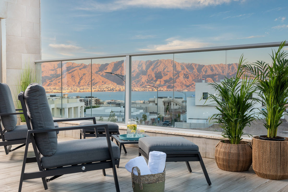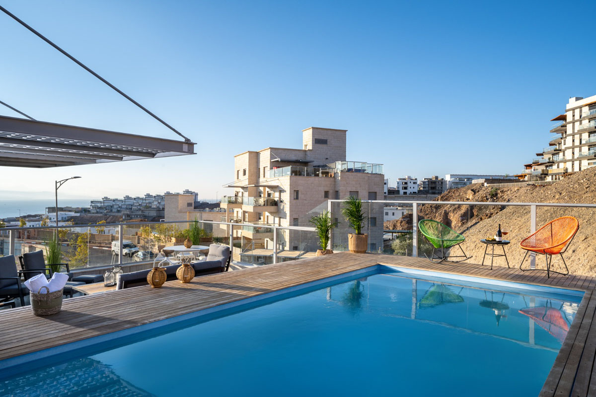 פנטהאוז מעוצב במפלס אחד, המשלב בין עוצמת המדבר לפינוק של בריכה מחוממת.