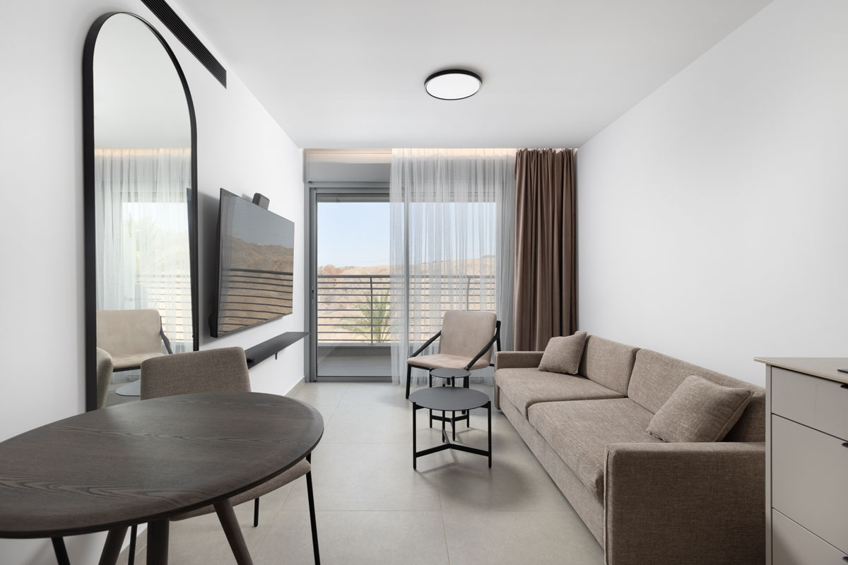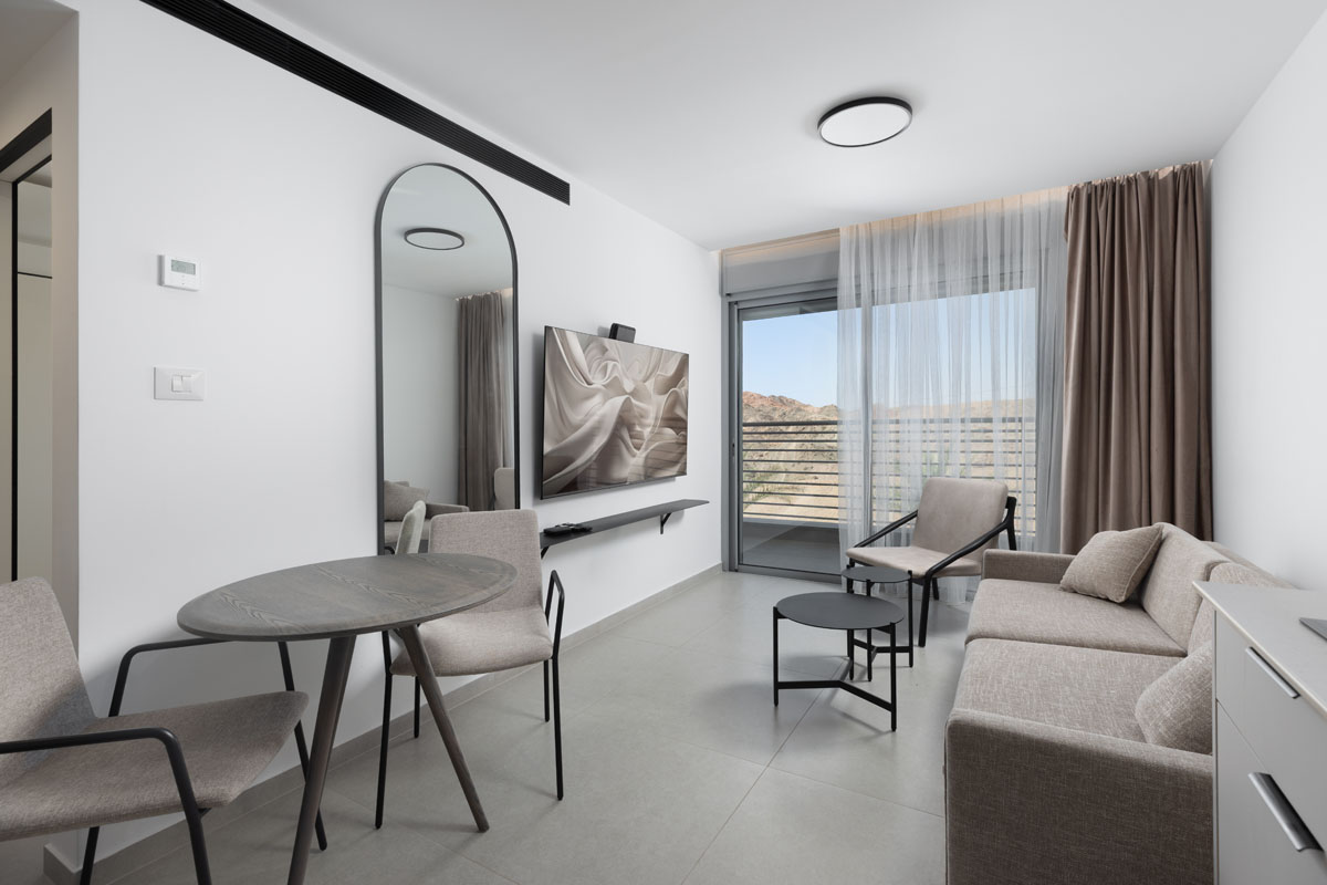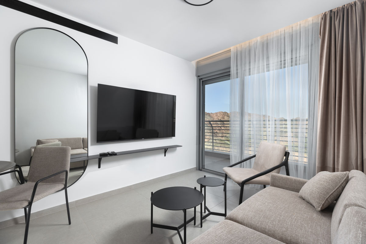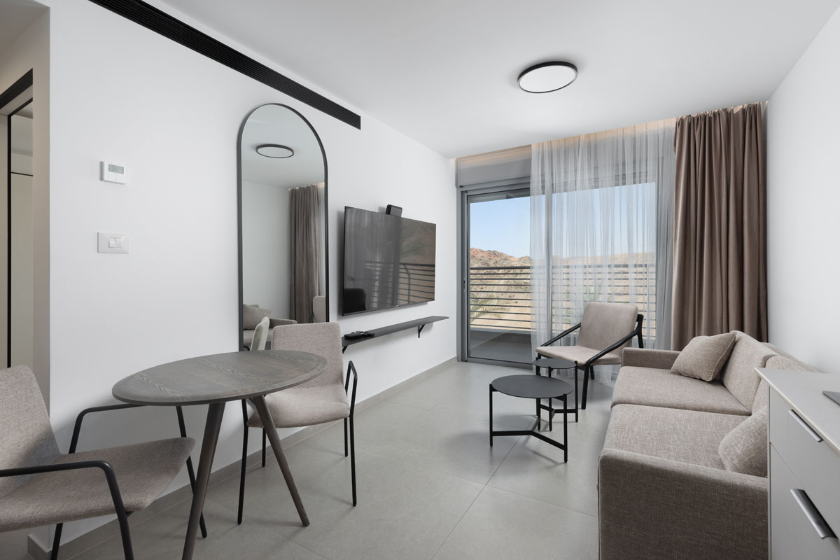 סוויטה מעוצבת הכוללת חדר שינה מפנק וסלון מרווח, כשהיתרון המנצח שלה הוא המרפסת המשקיפה אל נוף פנורמי מהפנט של הרי אילת. אידיאלית למי שרוצה להתעורר אל מול השלווה המדברית וליהנות מאבזור מלא עד הפרט האחרון.